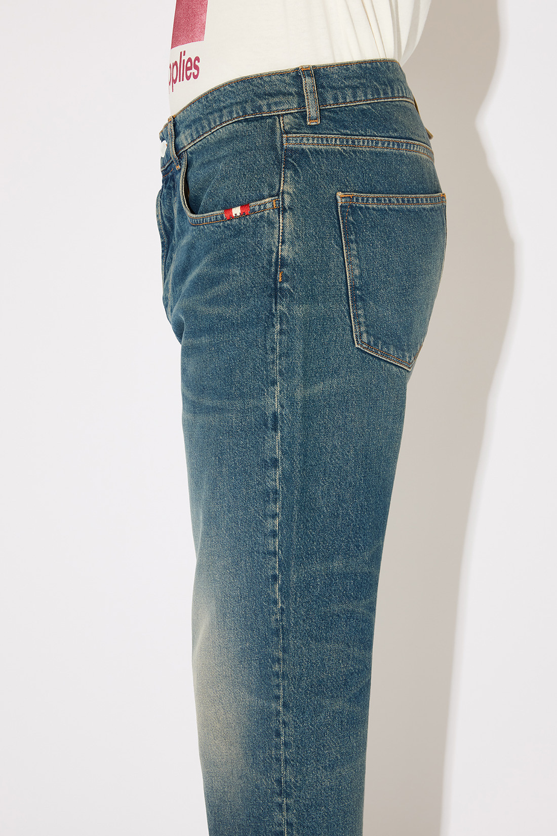 - Medium wash denim.