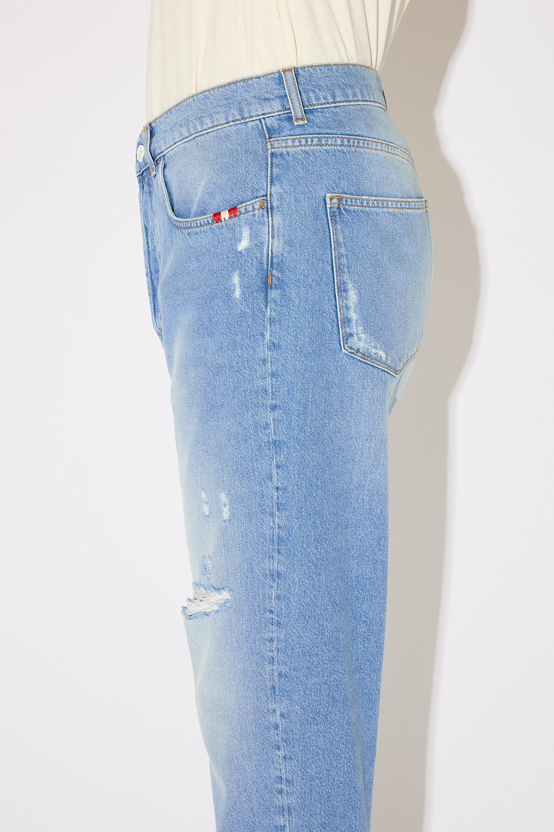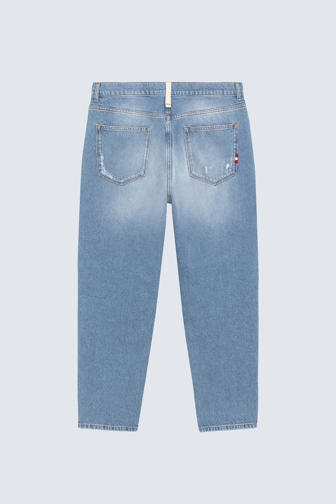 - Medium waistband with loops and peculiar logoed fabric loop at back.