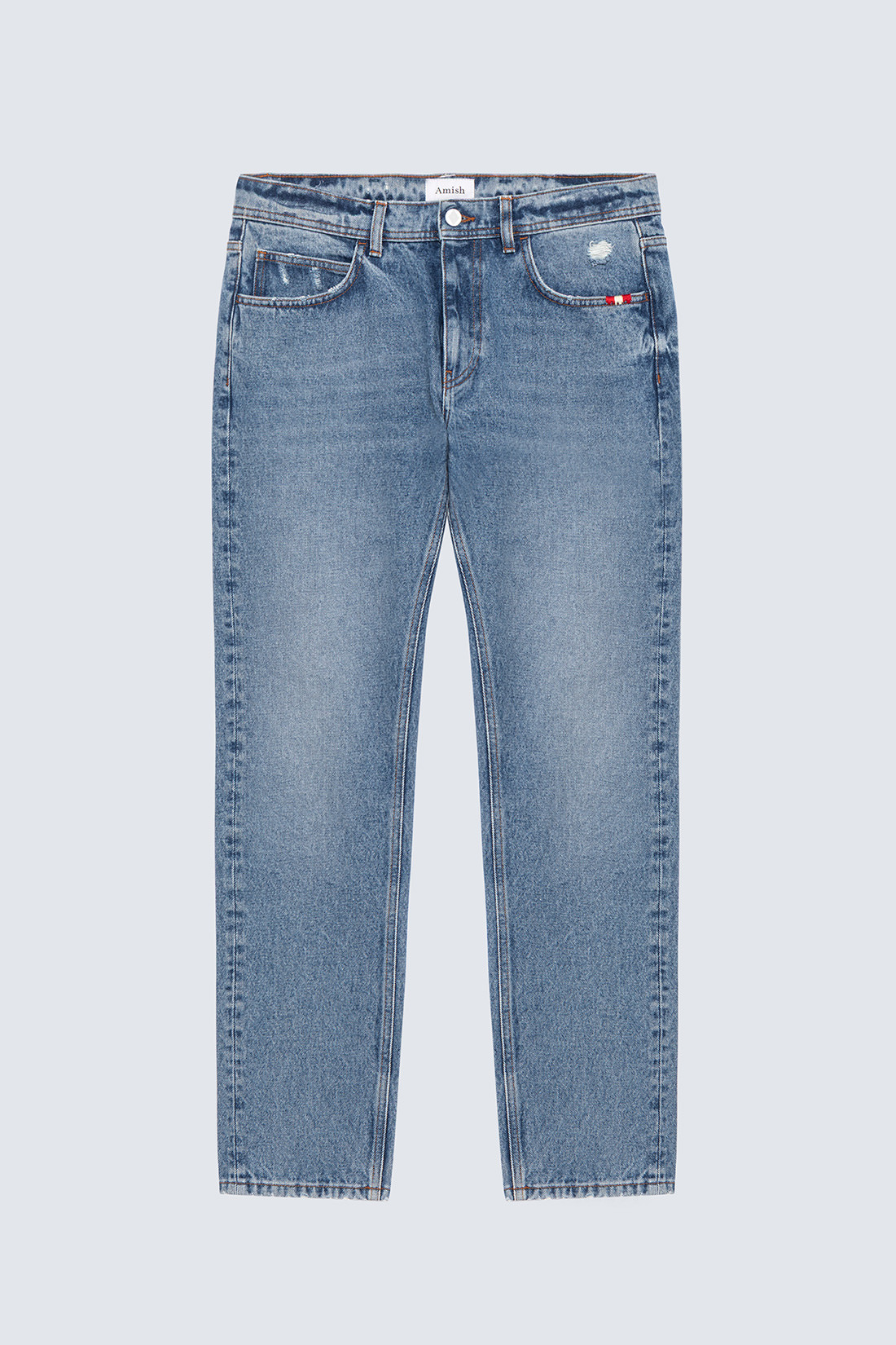 - Medium wash ocean stone denim.