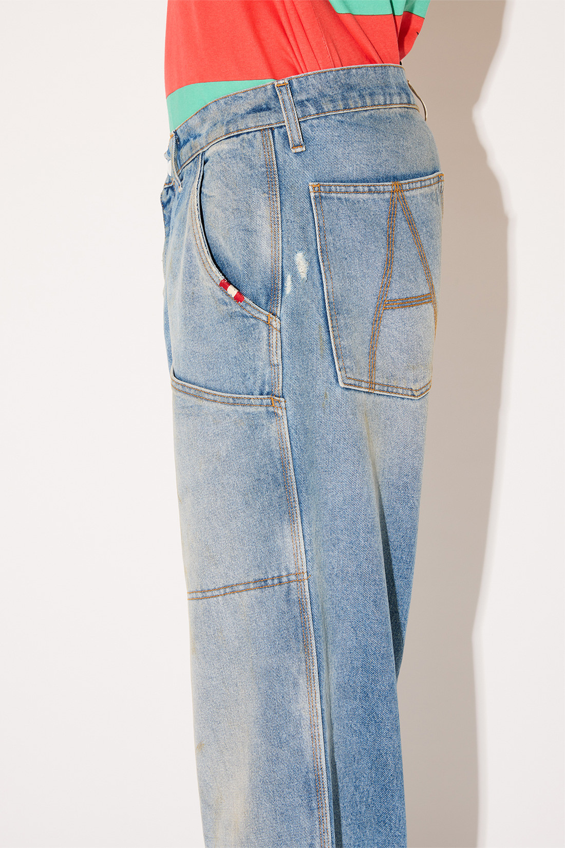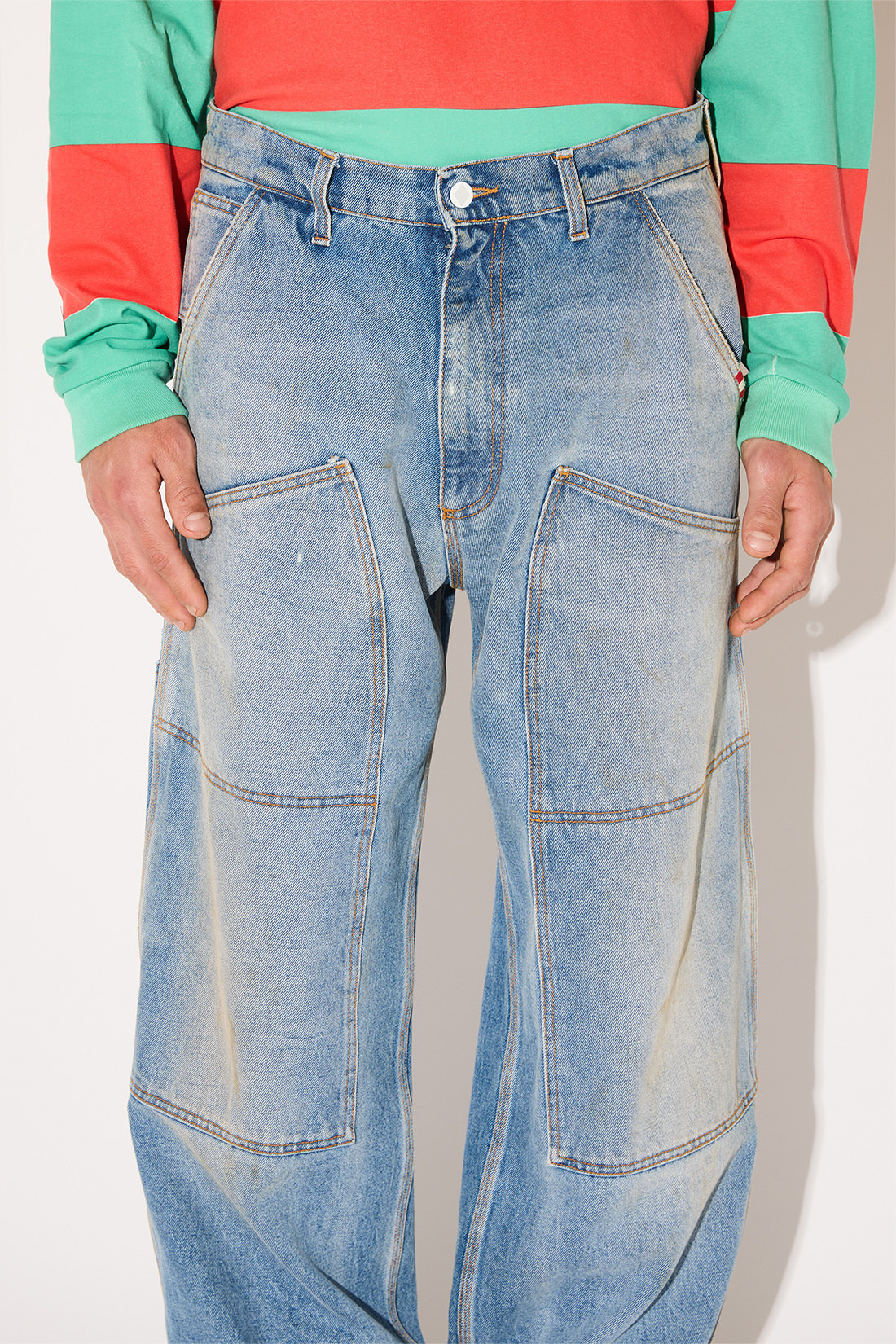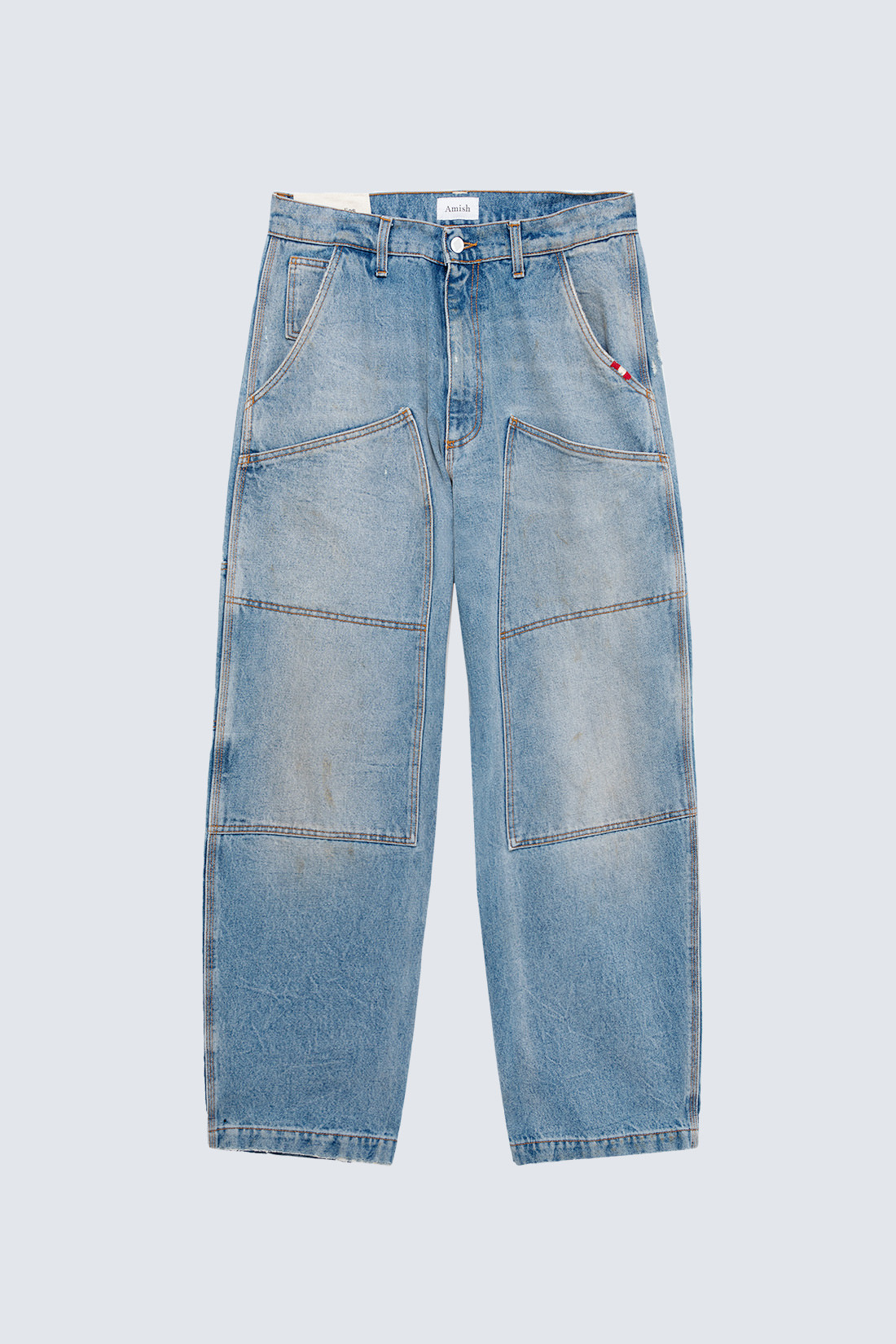 - Super knee Carpenter jeans in light wash denim with a slight used effect.