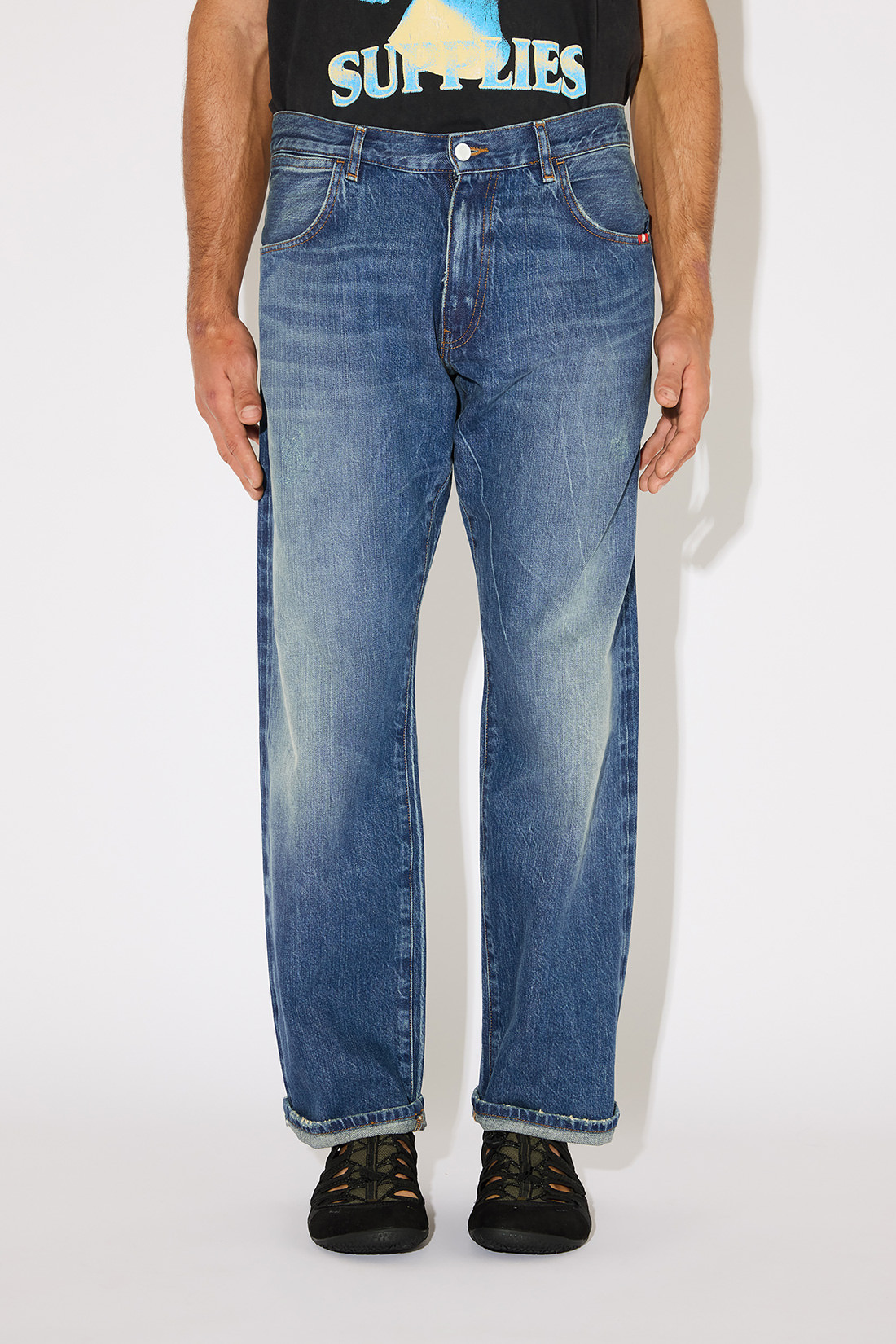 - Medium waistband with loops, rear label and peculiar logoed fabric loop at back.