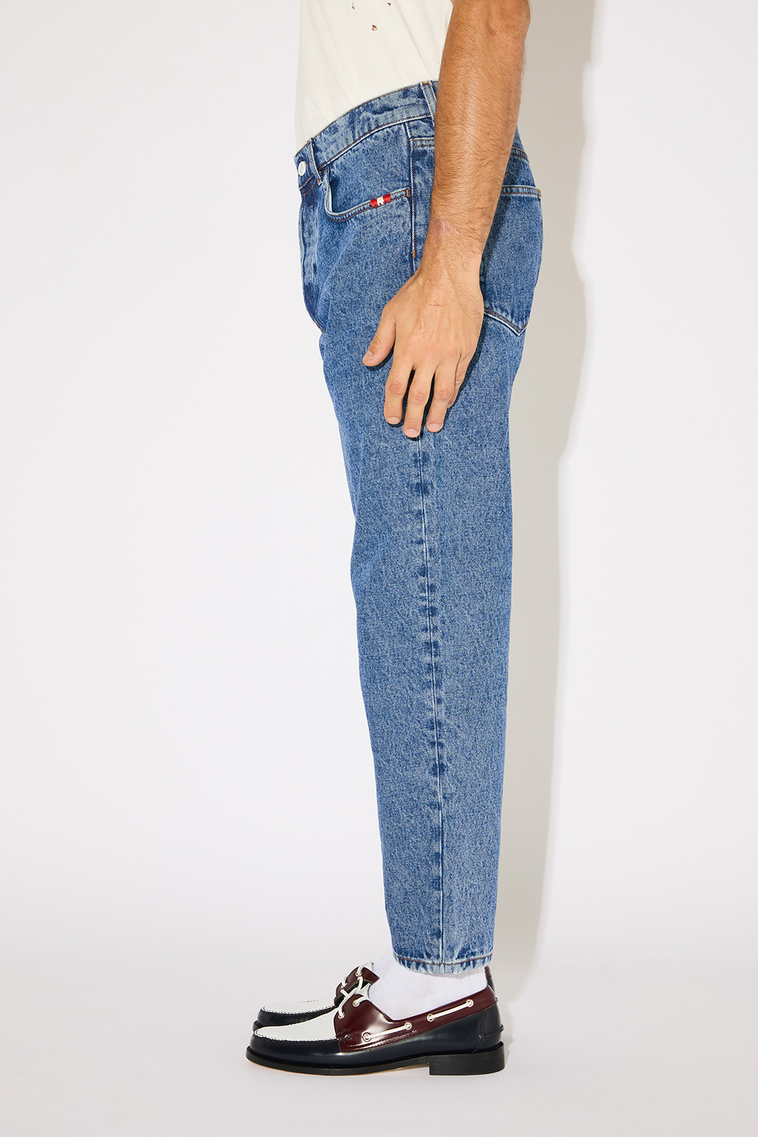 - Medium waistband with loops and peculiar logoed fabric loop at back.