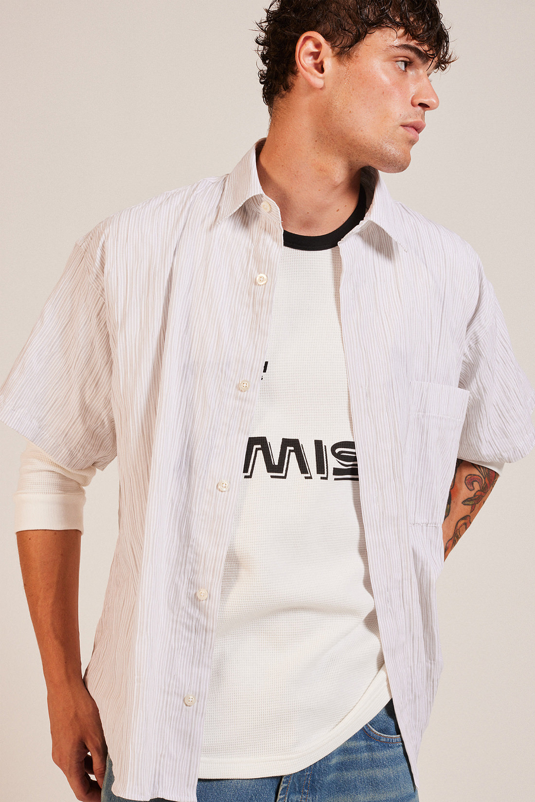DROPPED SHIRT IN STRIPED CRINKLE COTTON