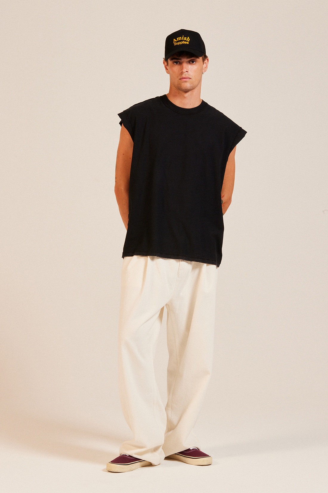 - Slash pockets at front, pockets at back with the iconic thread embroidery in contrast.