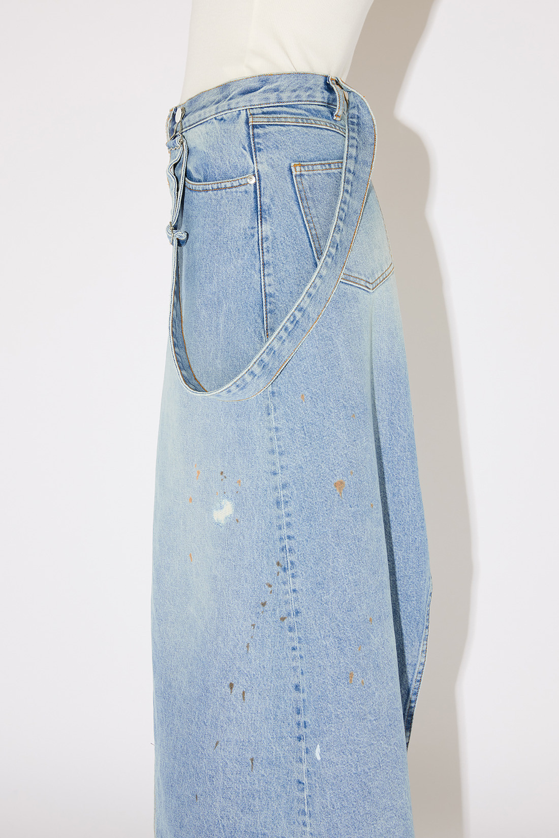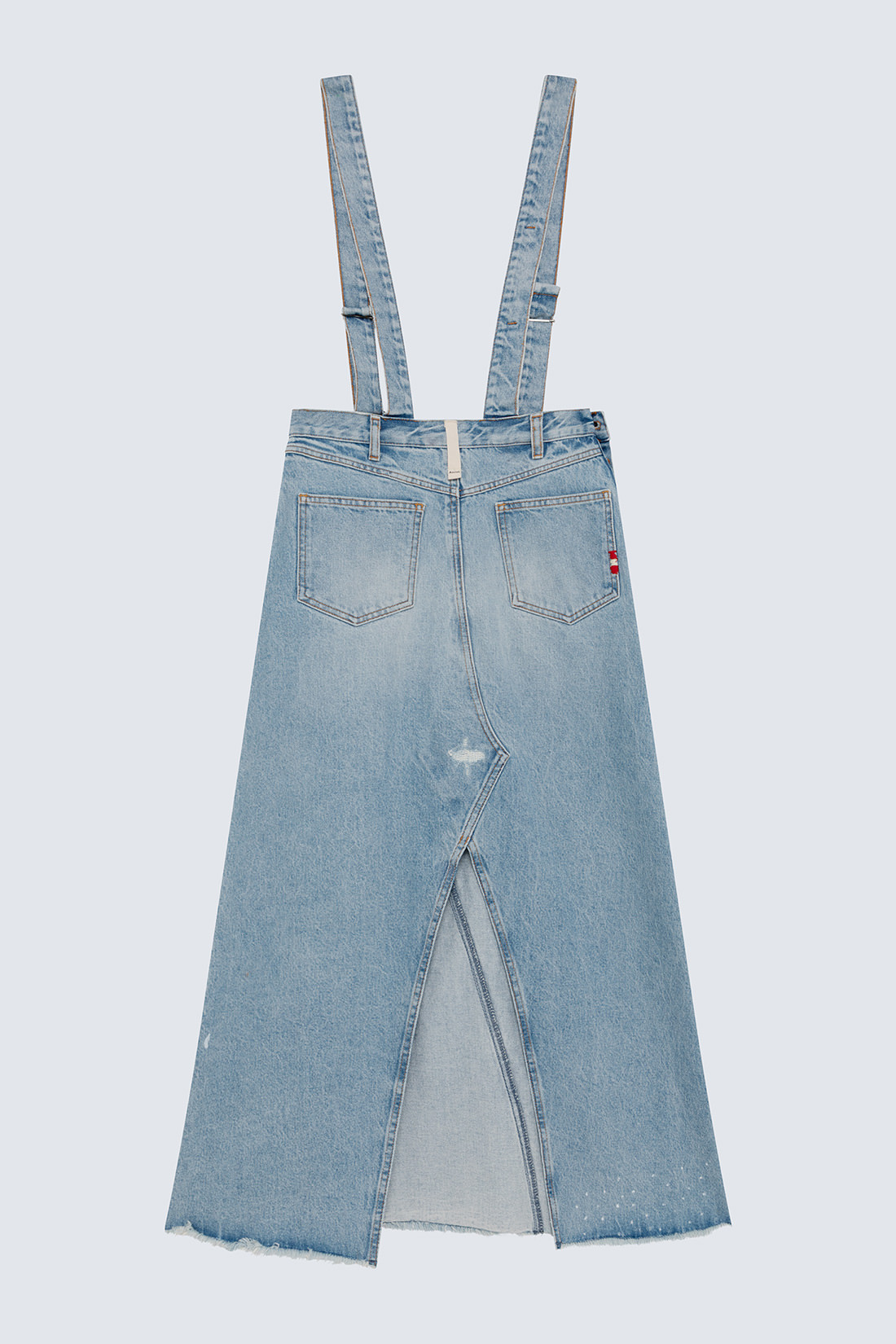 - Up Flare skirt in light-wash vintage denim.
