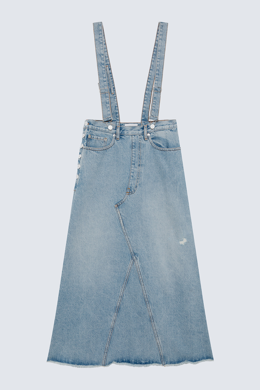 UP FLARE DENIM OVERALLS SKIRT