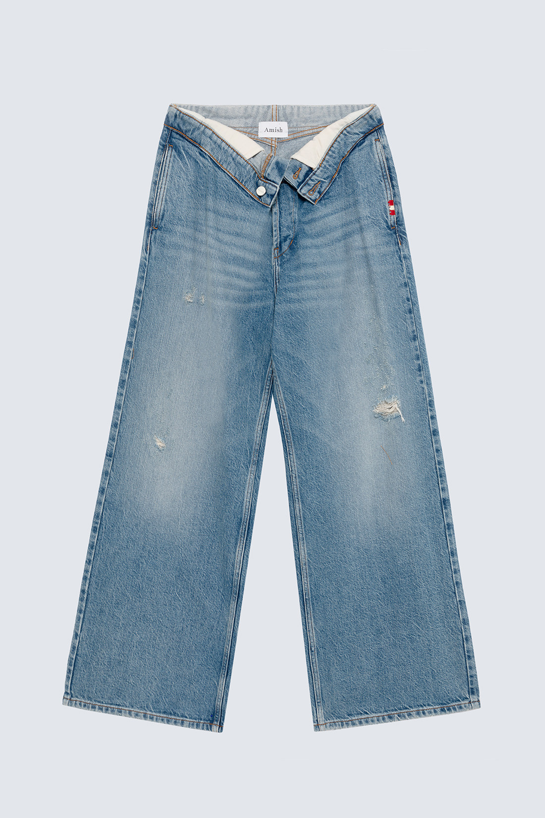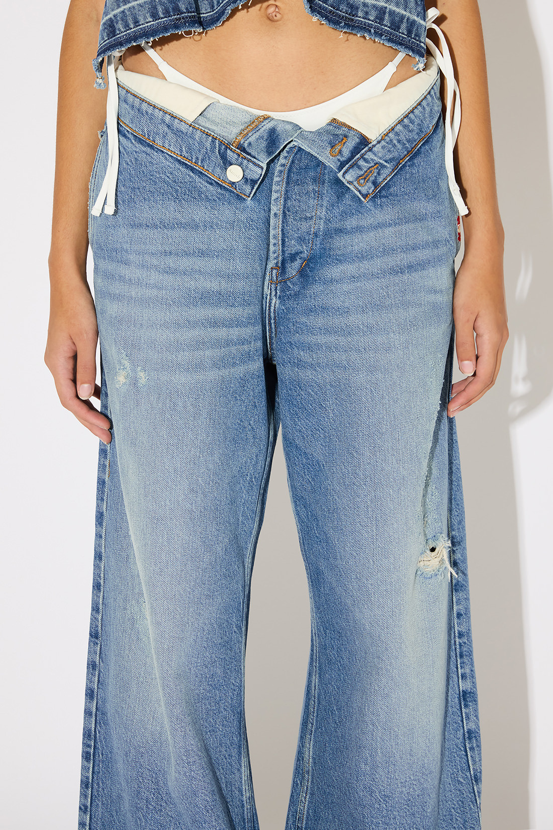 - Denim Roll up con lavaggio medio e leggero effetto used.