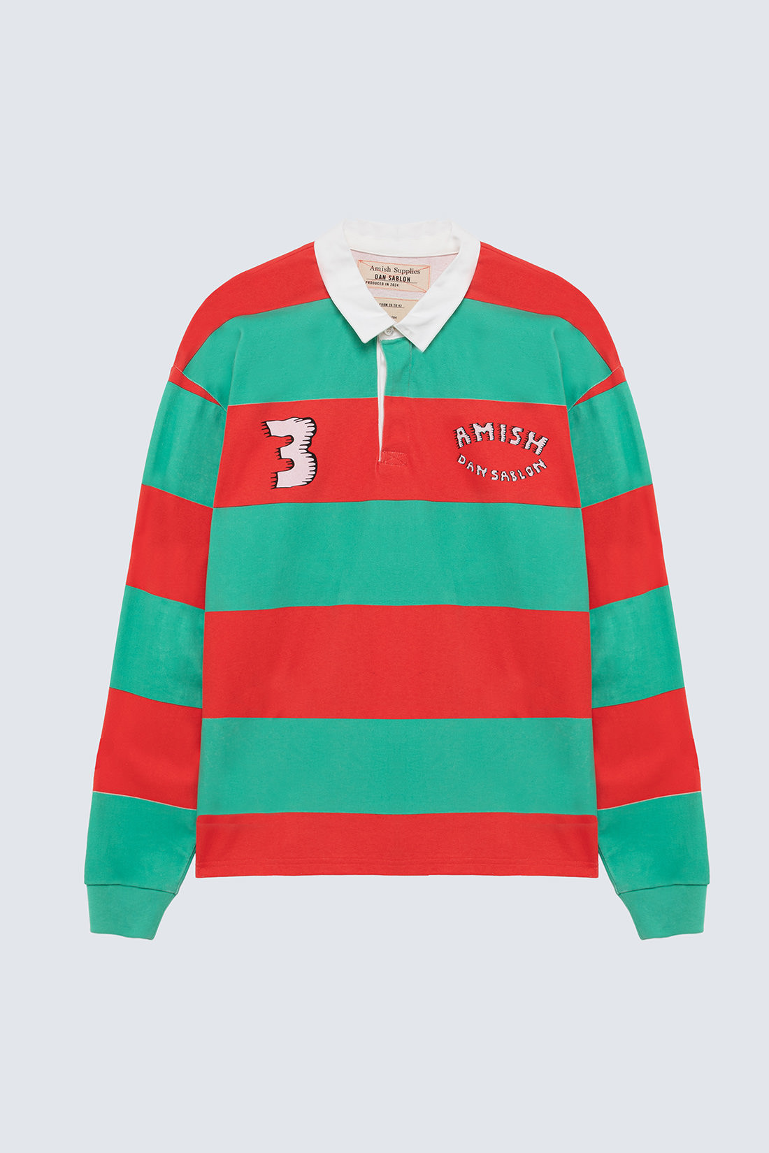- Polo rugby nata dalla collaborazione tra Amish Supplies e Dan Sablon in jersey stripe.