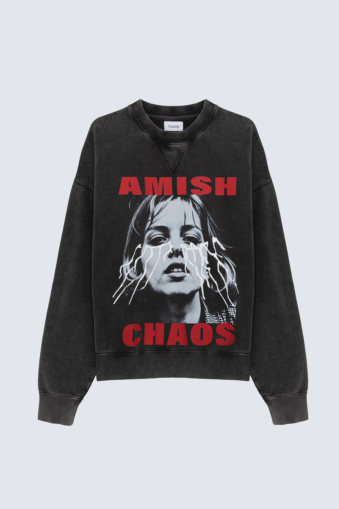 FELPA GIROCOLLO CON STAMPA CHAOS