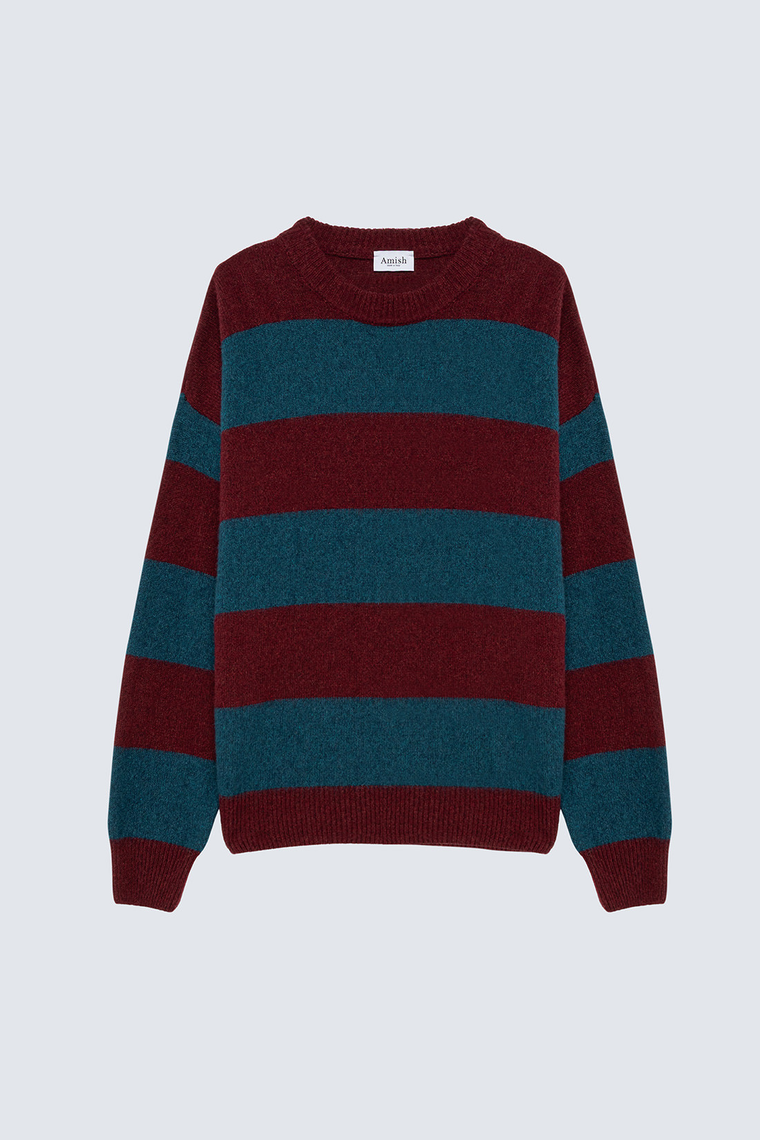 - Maglia girocollo in lana shetland con motivo stripe a due colori.